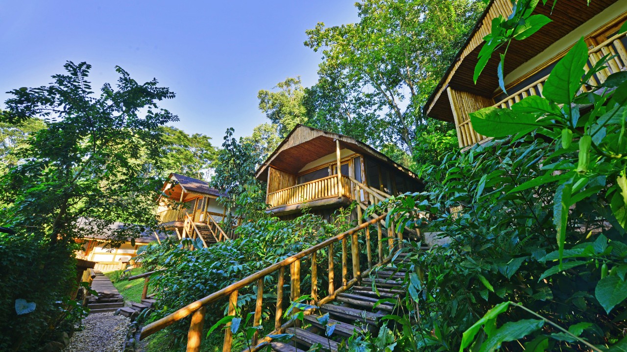 Tranquil and cosy, the ten spacious eco friendly wooden chalets offer a private escape. Fall asleep to the sounds of the forest and awaken to chattering birds and monkeys as day breaks. Enjoy morning tea/coffee on your private verandah with sweeping views over the primal forest– what better way to start the day.
